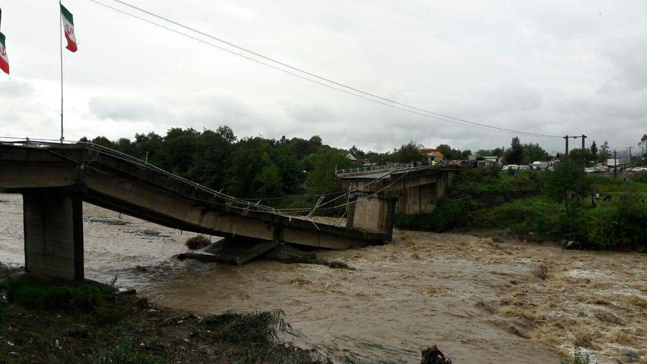 تخریب پل بزرگ املش در پی طوفان +عکس