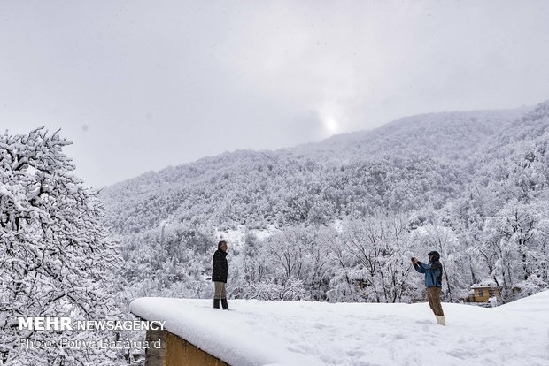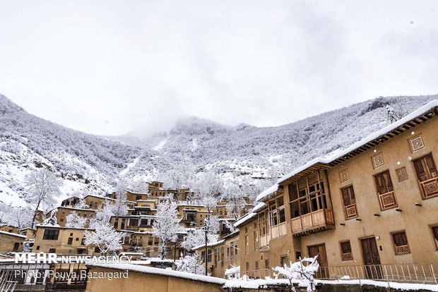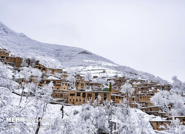 سفید پوش شدن روستای تاریخی ماسوله/عکس