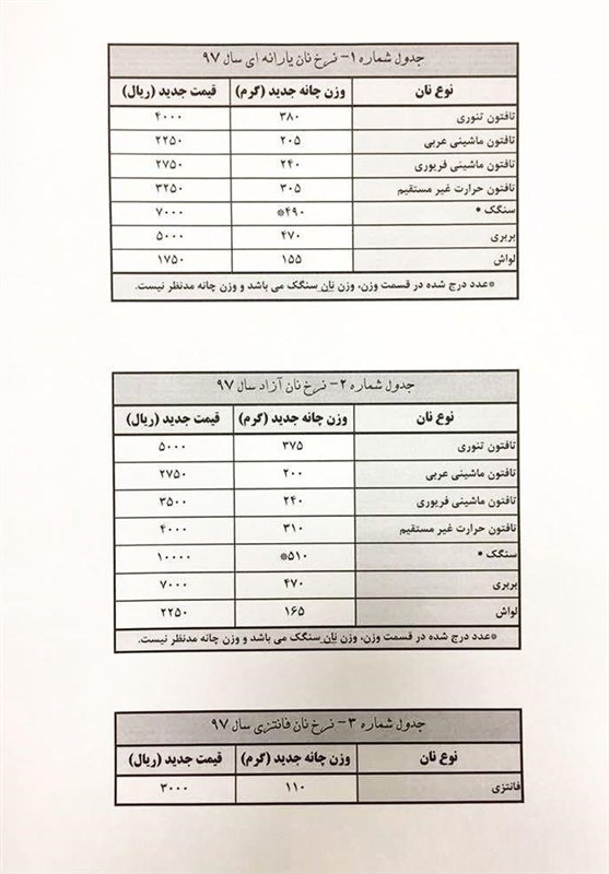 اعمال افزایش ۱۰ درصدی قیمت نان در استان یزد؛ فانتزی ۲۰ درصد گران شد + جدول قیمت