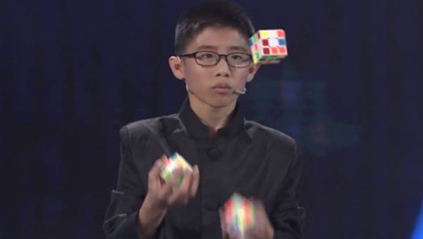 توانایی شگفت انگیز پسر نوجوان چینی در حل 3 روبیک هم زمان