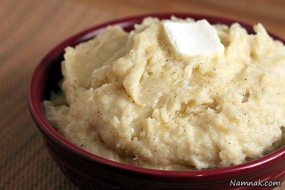 در ابتدا سیب زمینی ها و تخم مرغ ها را می پزیم . آنها را جداگانه پوست کنده و در ظرفی رنده می کنیم . اگر رنده شما ریز باشد بهتر است . کره را در دمای محیط نرم می کنیم سپس به سیب زمینی و تخم مرغ اضافه کرده خوب با هم مخلوط می کنیم .در ظرف مناسبی ماست را ریخته و شیر را به آن اضافه می کنیم این کار را تا زمانی انجام می دهیم فکه ماست و شیر به غلظت خوبی برسند .اگر این مایع شما شل باشد پوره شما را خراب می کند پس در این مرحله خوب دقت می کنیم . ادویه ها به جز فلفل و آویشن و نعنایی را که خوب ساییده ایم را اضافه می کنیم و مواد را با هم خوب مخلوط می کنیم روی ظرف را سلفون کشیده و به مدت دو ساعت در یخچال قرار می دهیم . پس از اینمدت و در مرحله سرو فلفل را اضافه می کنیم .