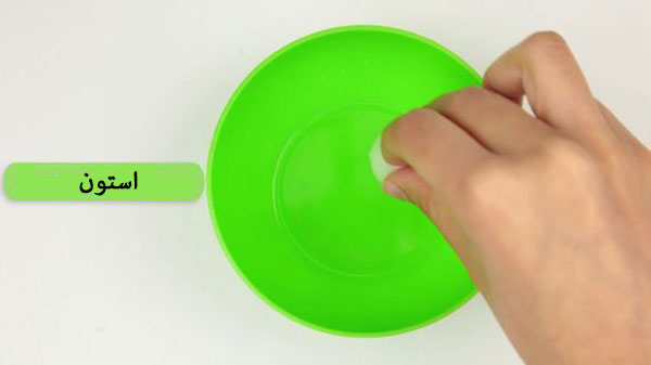 ۳. حالا در ظرفی استون ریخته و پنبهای را درون استون فرو ببرید و آن را کاملا از استون اشباع نمایید. پنبه را روی ناخن بگذارید و یا در ظرفی دیگر گذاشته و ناخن هایتان را درون آن فرو کنید. به مدت ۱۰ تا ۱۵ دقیقه صبر کنید و سپس کاور را از روی دستتان به آرامی پاک کنید. اگر باز هم نرم نبودند حتما ناخنهای خود را زمان بیشتری درون استون نگه دارید.