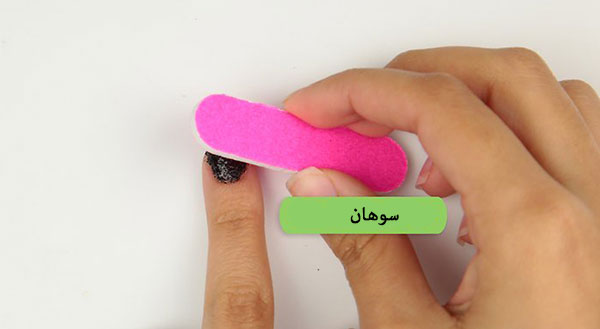 ۴. بعد از نرم شدن کاور روی ناخن آن را با یک کاردک مخصوص مانیکور یا موچین برداشته و سطح ناخن هایتان را صاف کنید. دقت کنید که به ناخن آسیب نزنید. در مرحله آخر ناخن را مجددا سوهان زده و پاکسازی ناخن را انجام دهید. میتوانید از بافر ناخن برای صاف کردن سطح آن استفاده نمائید.