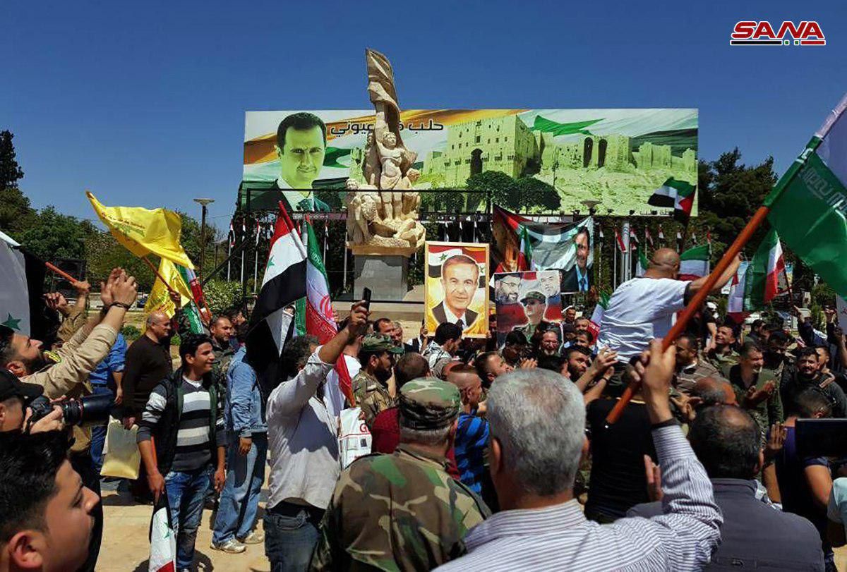 عکس روحانی، پوتین و بشار اسد در تجمع مخالفت با حملات کشورهای غربی