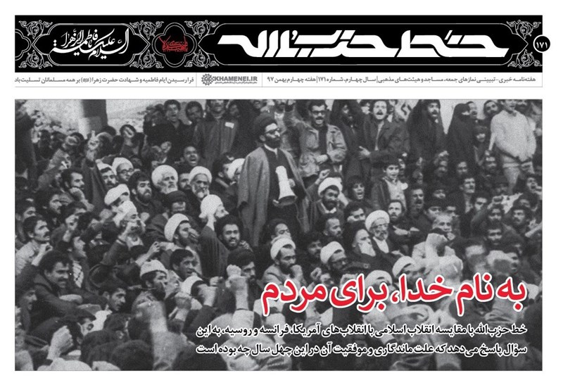 خط حزبالله، با مقایسه انقلاب اسلامی با انقلابهای آمریکا، فرانسه و روسیه، به این سؤال پاسخ میدهد که علت ماندگاری و موفقیت آن در این چهل سال چه بوده است؟ وظیفه نسل جوان مومن و انقلابی چیست؟ در بخشی از این متن چنین میخوانیم: «[انقلاب اسلامی] نخستین انقلاب بزرگ تاریخ انقلابهای دنیا در طول قرنهای اخیر است که توانسته خط مستقیم و جهتگیری خود را در یک چنین مدت طولانی حفظ کند؛ این سابقه ندارد... اولین انقلابی که با مردم شروع کرد، با مردم ادامه داد، حرف خود را عوض نکرد، راه خود را تغییر نداد و اهداف خود را کم و زیاد نکرد، انقلاب اسلامی ایران است. این انقلاب به نام خدا و برای مردم و برای عدالت و استقلال و آزادی آغاز شد و این راه را همچنان ادامه داده است. هنوز شعارها همینهاست و به توفیق الهی این شعارها همچنان خواهد بود.» 83/11/19