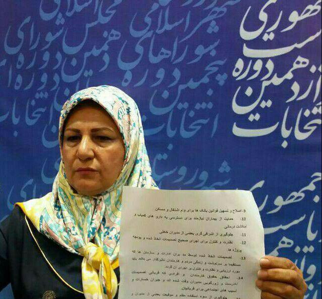 آمنه صادقی فوق لیسانس علوم اجتماعی، خانه دار است و شعار او مقابله با فساد و ایجاد اشتغال است. میداند که رد صلاحیت میشود اما ثبت نام را ابزاری برای بیان عقاید و مشکلات میداند.