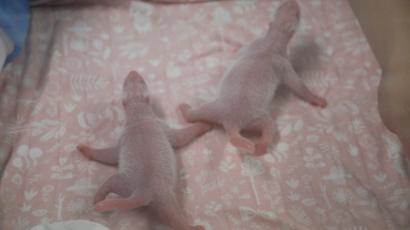 این تولهها روز پنجشنبه به دنیا آمدند و توله نر ۱۶۰ گرم وزن داشته و توله ماده دو ساعت پس از آن با وزن ۱۵۰ گرم به دنیا آمد.