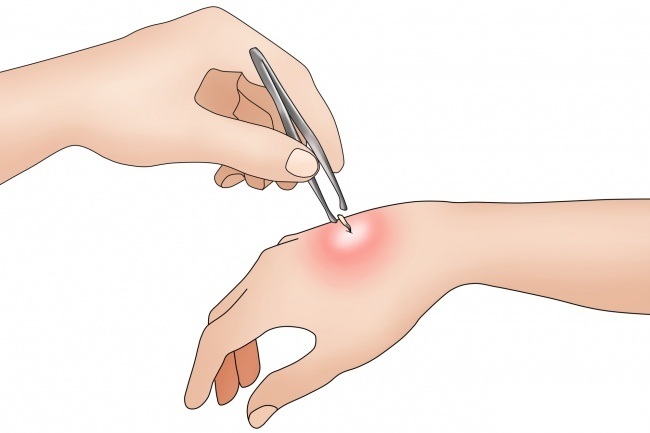 زنبورها پس از گزیدن قربانی، نیش خود را در بدن وی جا می گذارند. به همین خاطر، لازم است با استفاده از موچین، ناخن های تیز یا حتی کارت بانکی آن را از پوست خارج کنید. توجه داشته باشید که این کار باید با دقت و ظرافت زیادی انجام گیرد تا از خروج نیش به طور کامل مطمئن شوید. به هیچ عنوان بخش محسوس نیش زنبور را فشار ندهید تا زهر بیشتری از آن وارد بدن نشود.