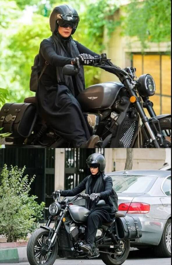 لادن مستوفی، بازیگر سینما و تلویزیون در سریال «گناه فرشته» که ساخته حامد عنقا است، موتورسواری کرد.
